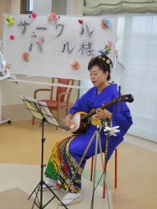 お昼からボランティアのサークル パル様に来ていただき、三味線と踊りを披露していただきました?