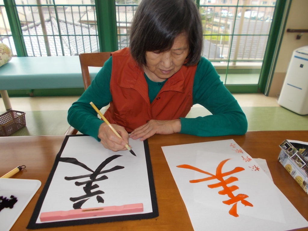 さて老健では書道教室を開催? 皆様、真剣ですね?