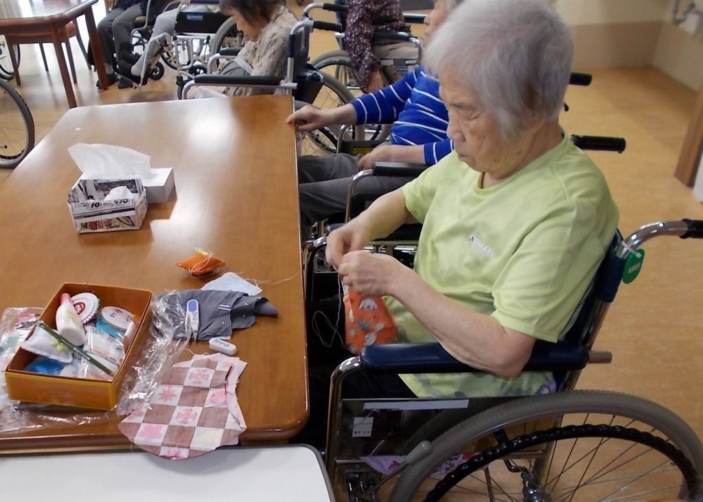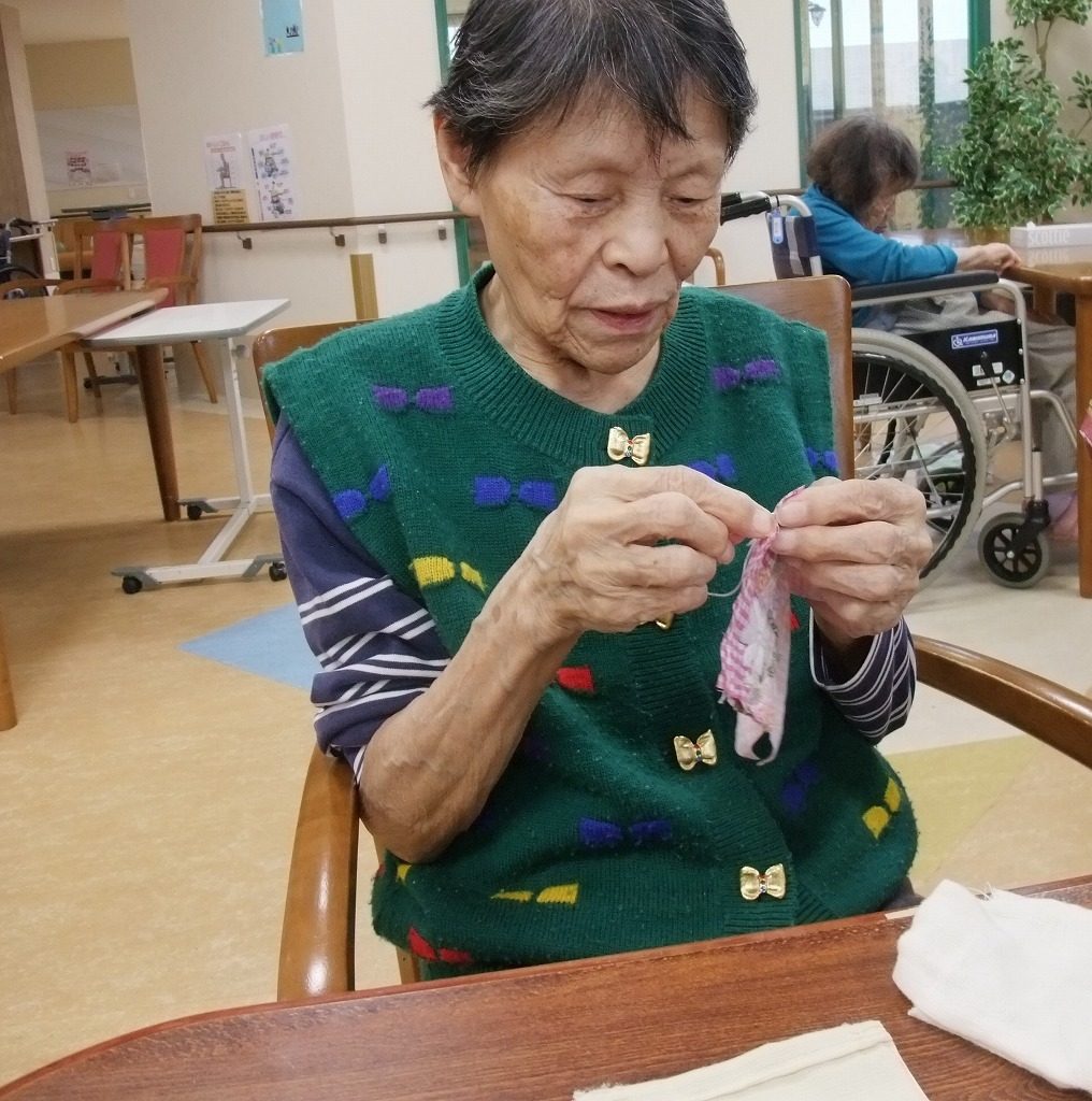 さて、老健ではゲスト様と一緒にマスク作りに挑戦しました✂