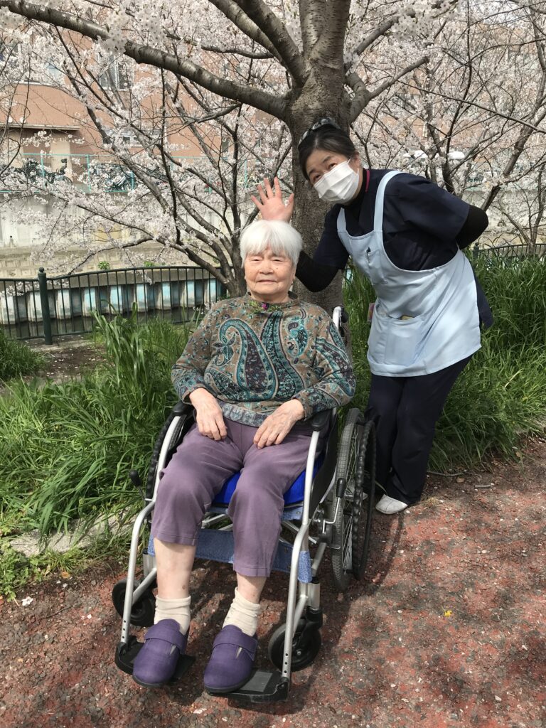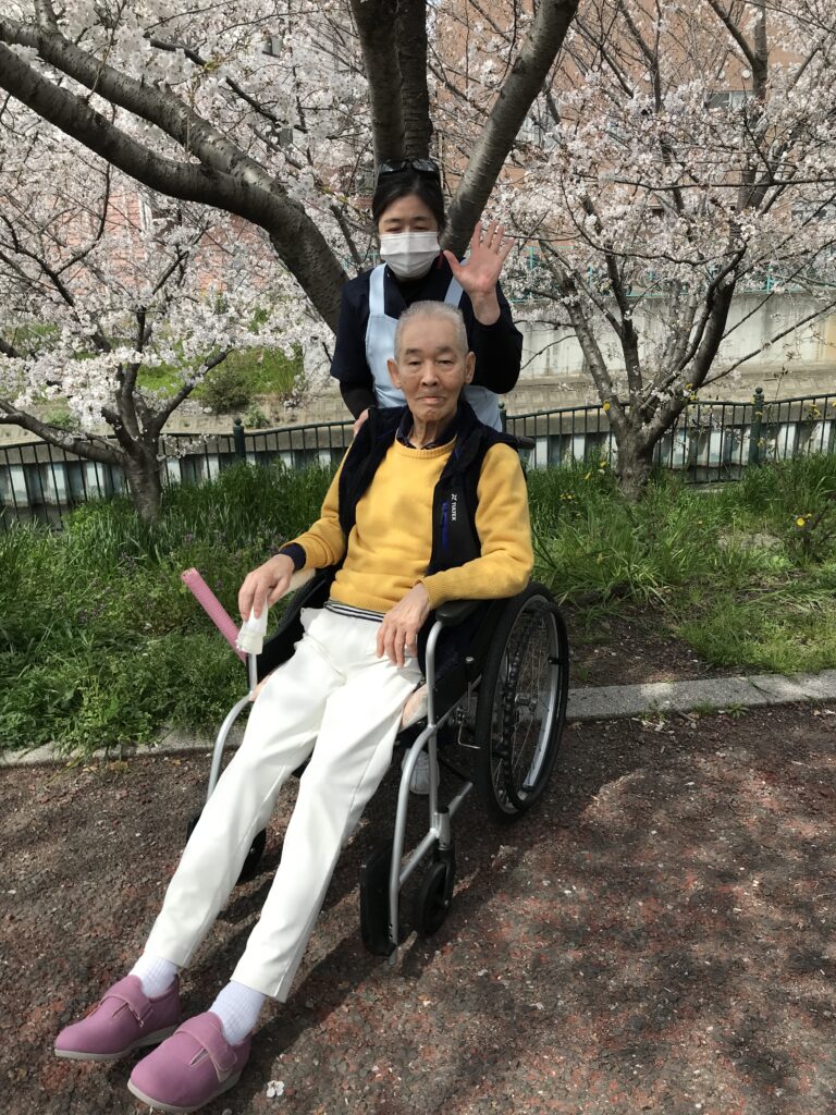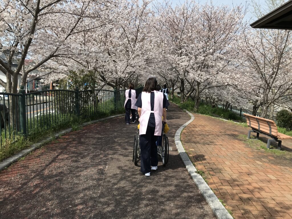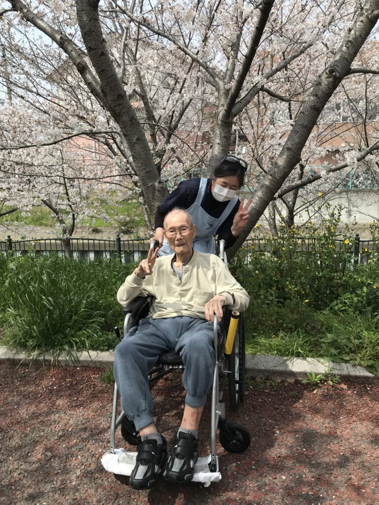 さて老健では、天気予報と睨めっこをしながら4月5日にお花見を決行(良かった)
