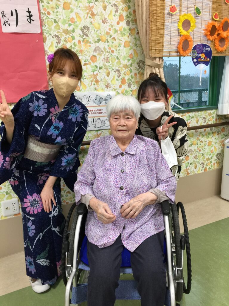 盆踊りは、色鮮やかな浴衣👘を着たスタッフと一緒に、炭坑節の踊りを楽しまれました😊