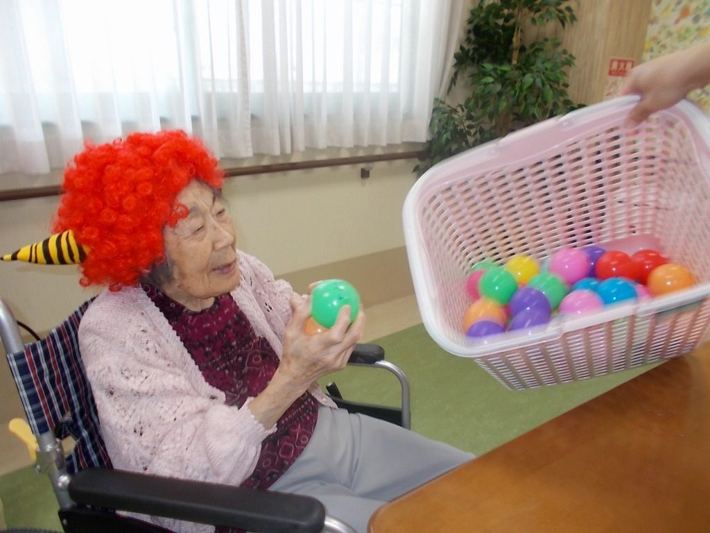カラーボールで豆まき…?を楽しみながら…あれ、ゲストさんも鬼になっていますね?