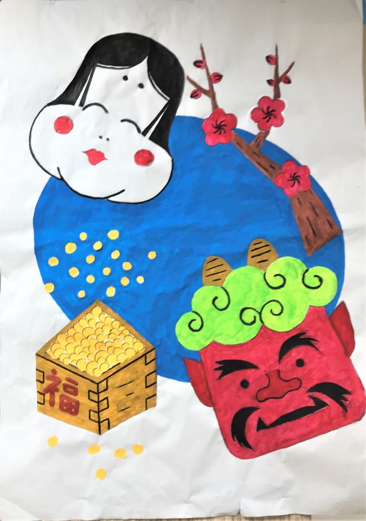 2月の壁画は『豆まき』をイメージした壁画です。
