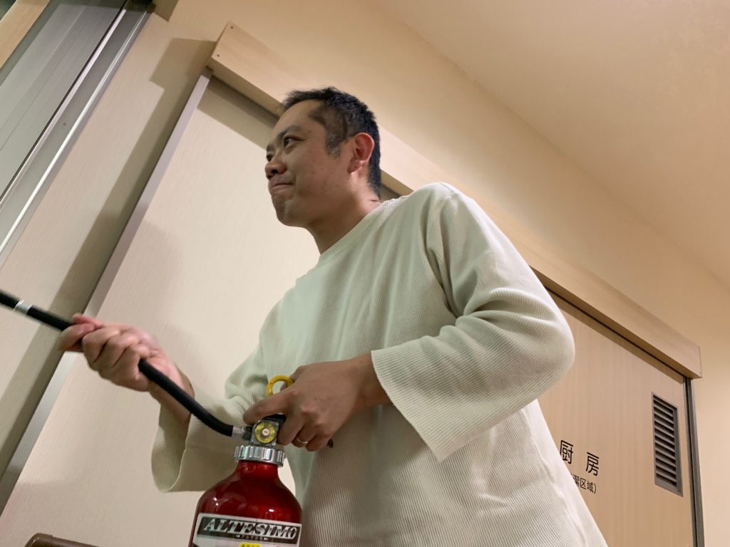 最後にゲスト様とスタッフの人数確認等をしました❗ 消防設備管理の方に来ていただき、ポルトの中の設備等の説明を受けました??