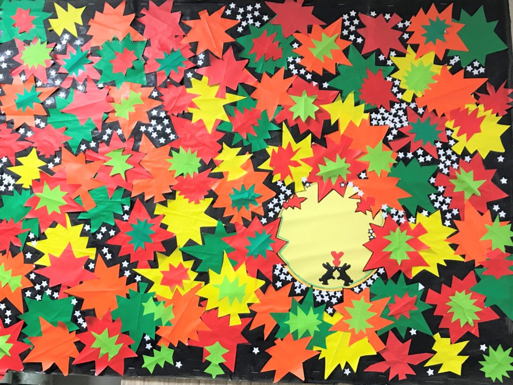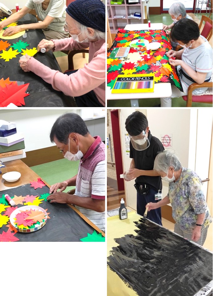 夜空の黒を塗り、色とりどりの紅葉を切って、貼り付けて