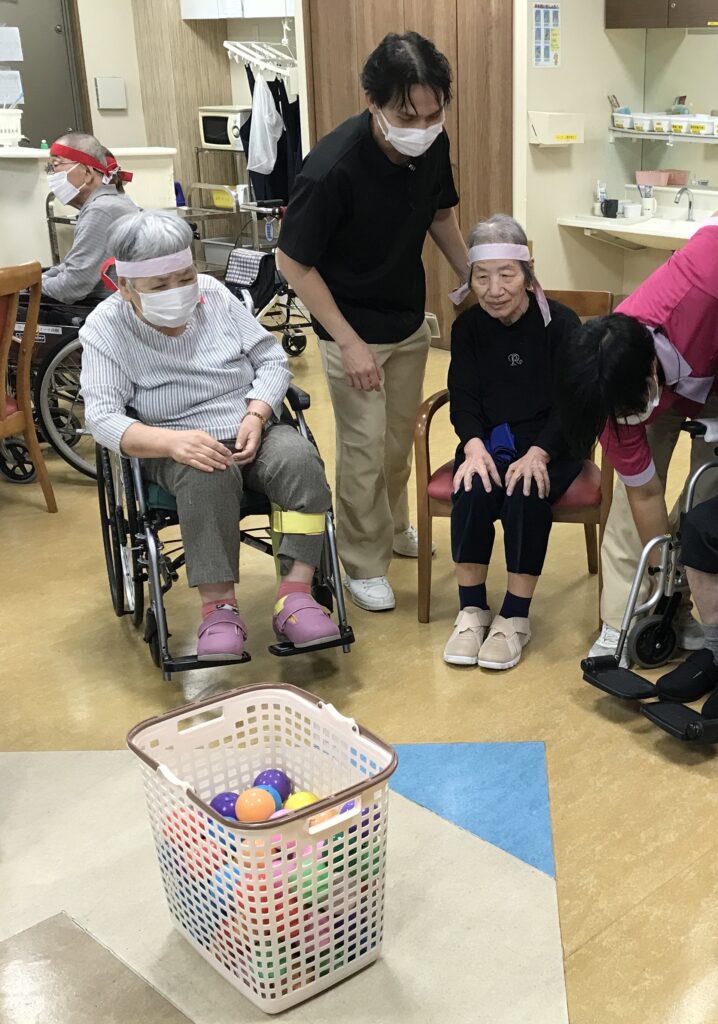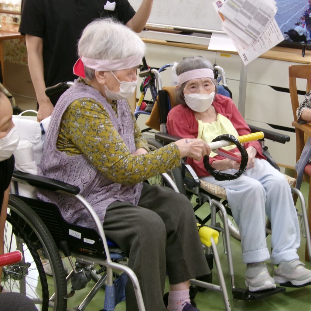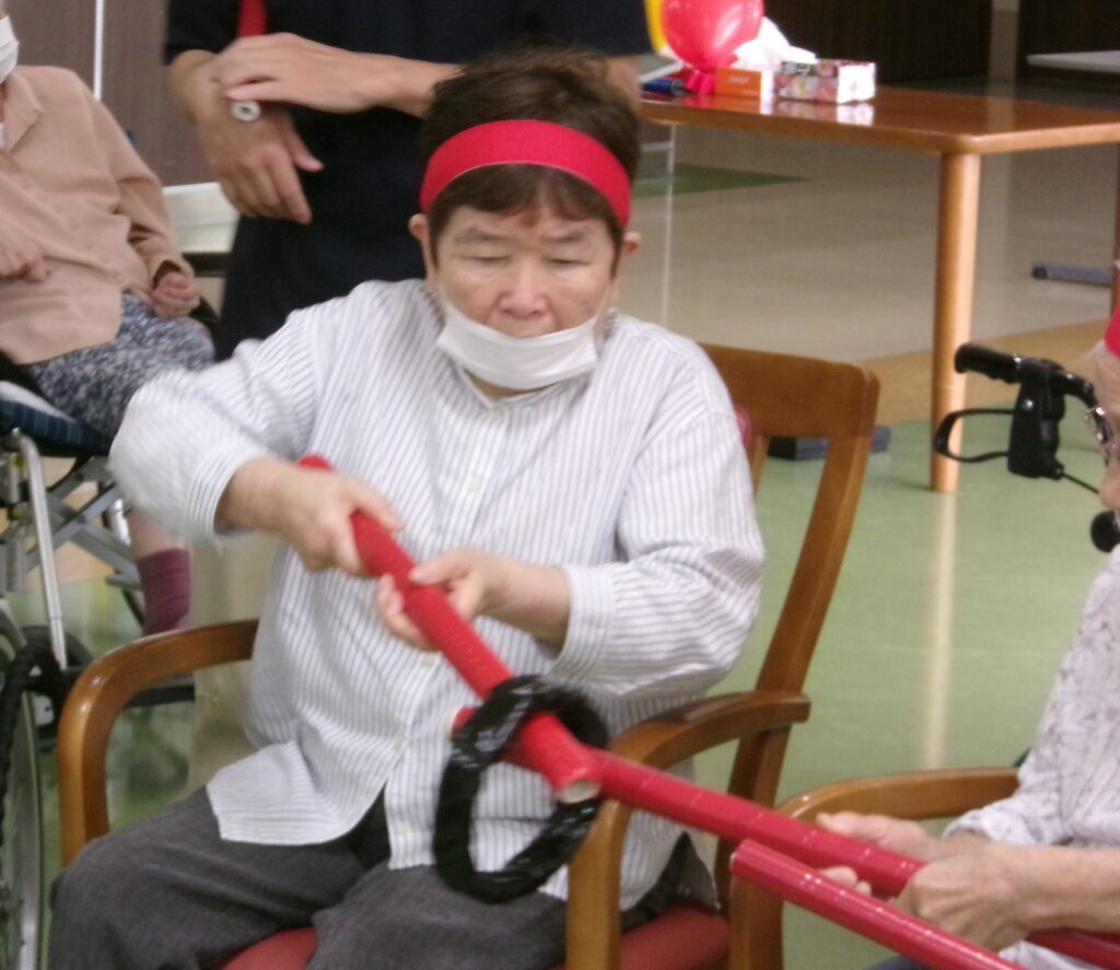 隣りの人に輪っかを渡して1周のタイムを競います🖐️