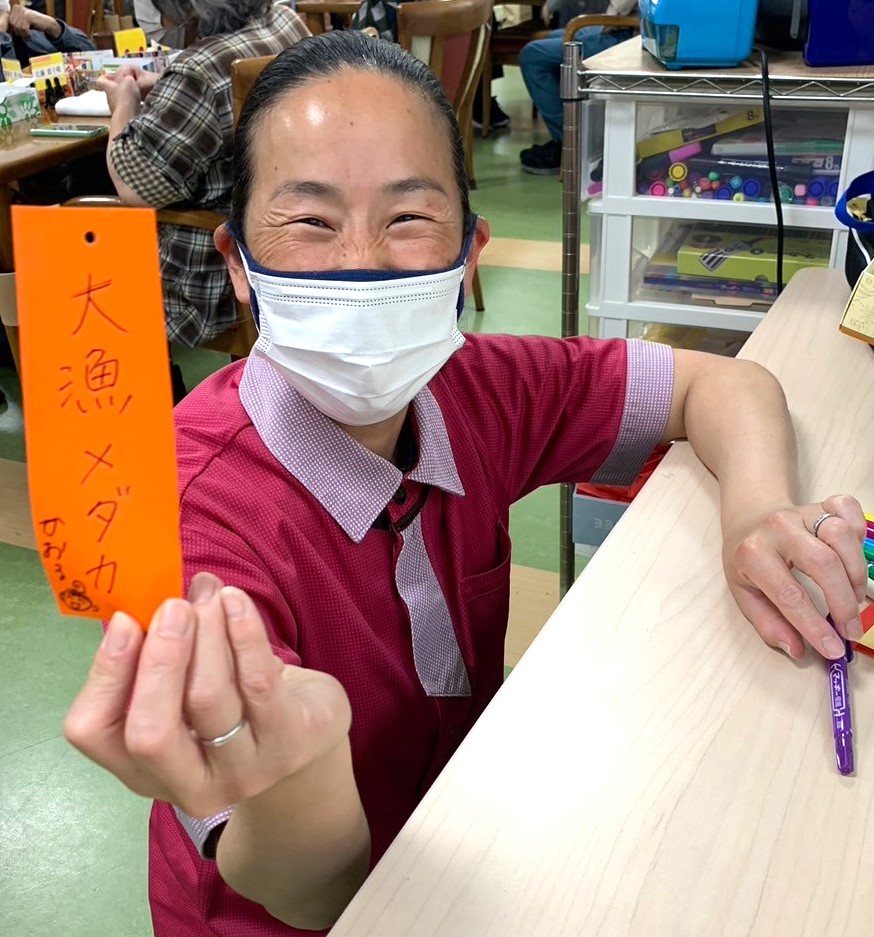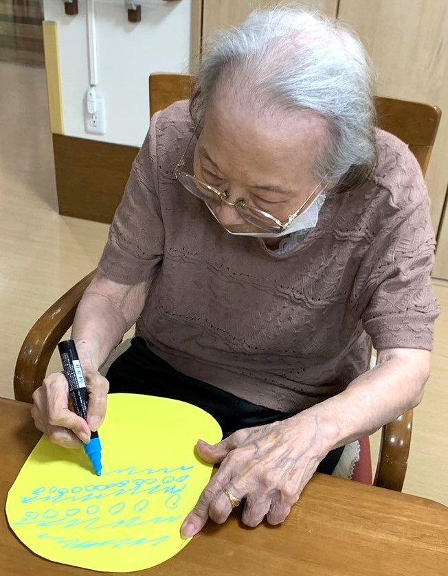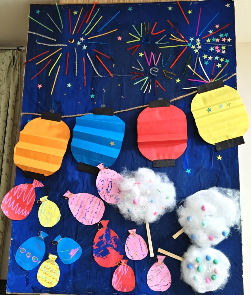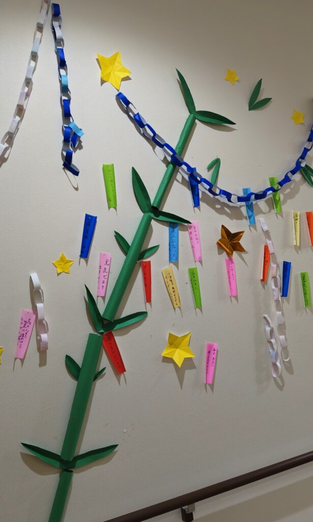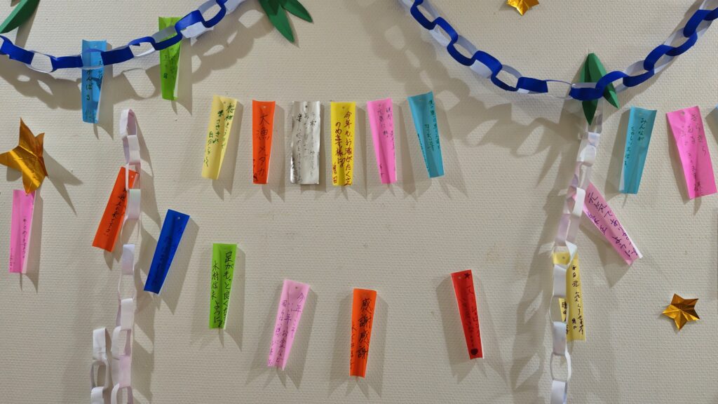 トイレ前ギャラリーには、みんなの願いを込めた短冊を